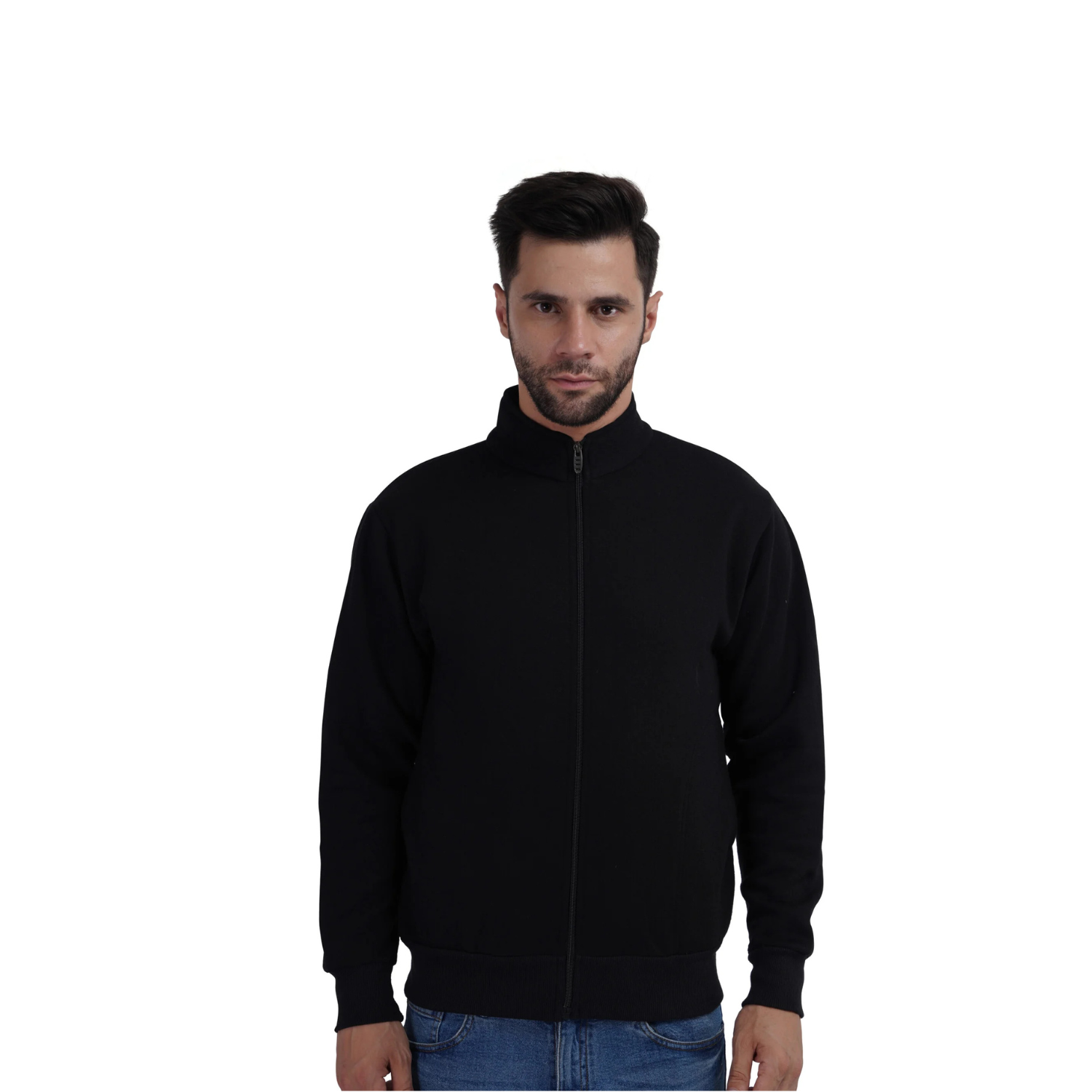 Men’s Black Stand-Collar Zip Sweatshirt Jacket