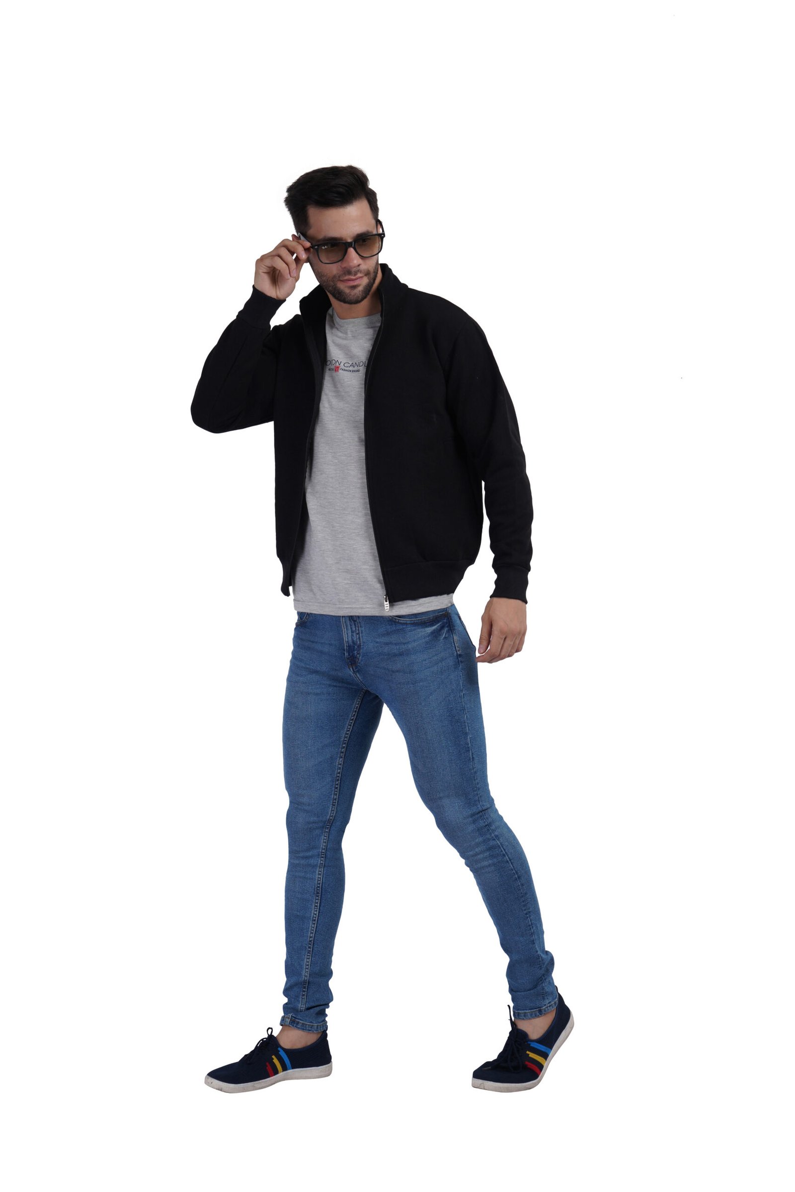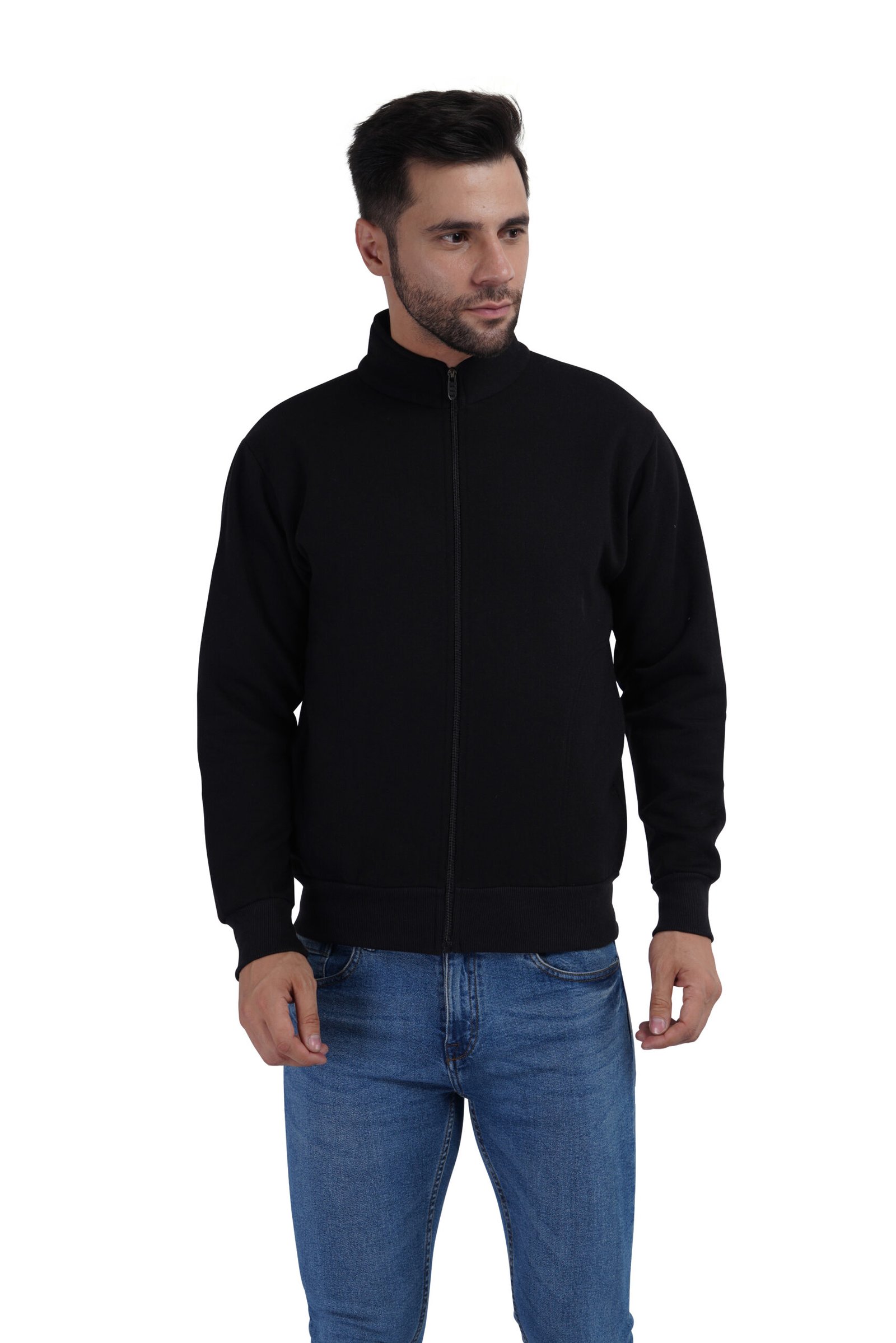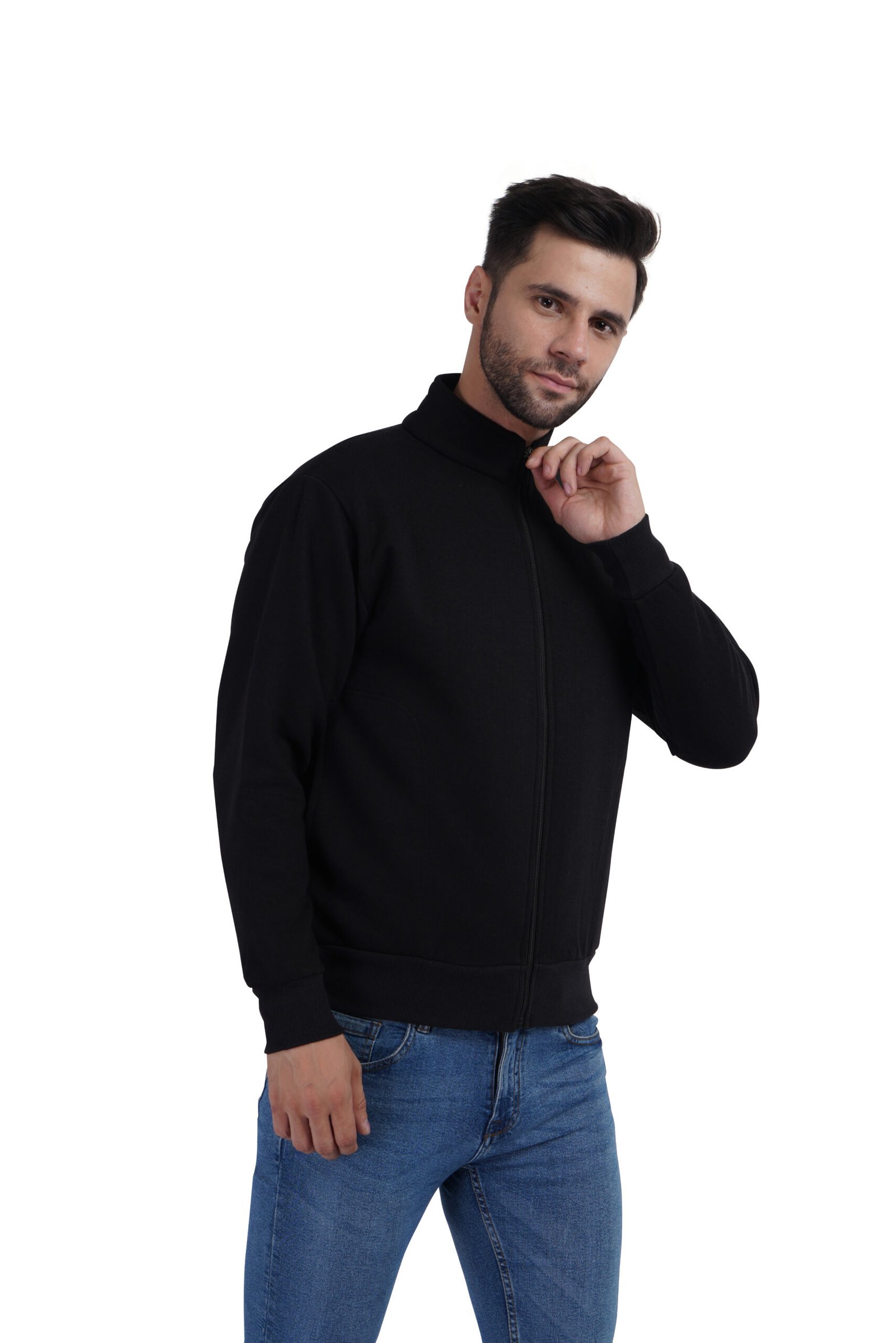 men’s black stand collar zip sweatshirt jacketMen’s Black Stand-Collar Zip Sweatshirt Jacket