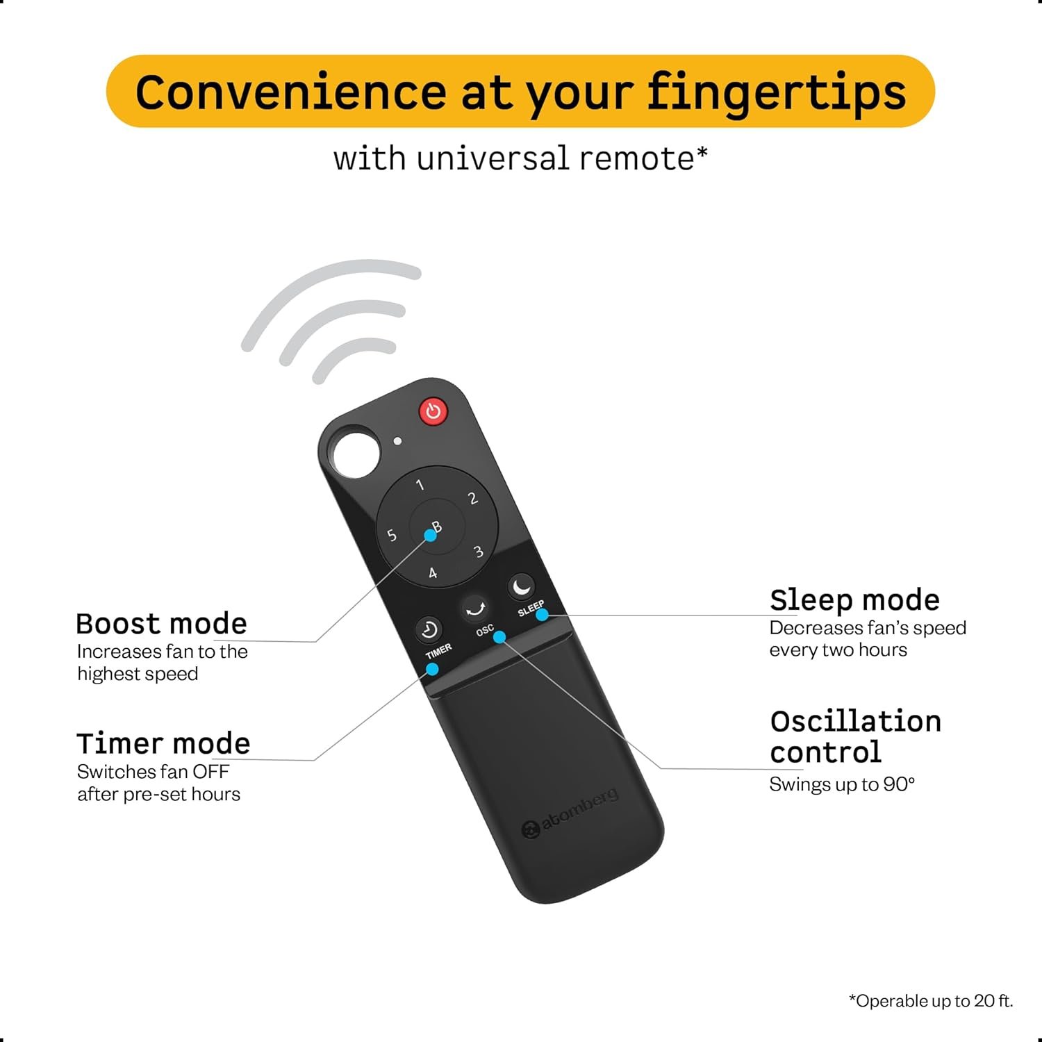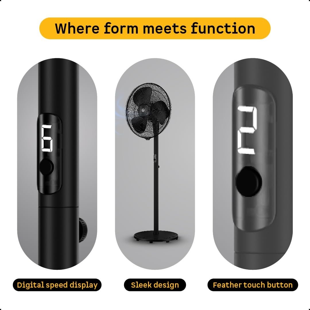 Renesa 400mm Pedestal Fan | 5-star rated | Ideal for Home & Office | Silent BLDC Stand Fan | 6 Speeds | 35W | Remote with Oscillation, Timer, Sleep | 2 Years Warranty (Midnight Black)